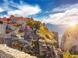 Begin an afternoon dedicated to exploring the famous Meteora, impressive monasteries perched atop massive rock formations. Visit two of the most iconic monasteries, where you can admire Byzantine frescoes, ancient libraries, and enjoy spectacular views of the Thessaly Valley.
